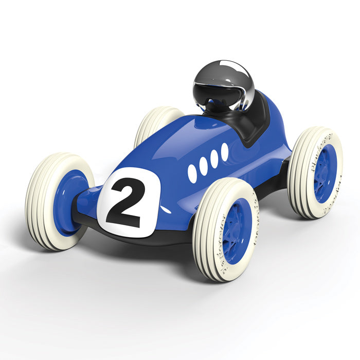 Sleek rounded curves give the Verve Loretino range from Playforever it's timeless and understated appeal. Rubber wheels that move tough construction from heavy duty plastic and UK designed they are built for imagination and everyday play but also look great on the shelf as a room decoration. Monaco is a gorgeous blue with matching rims white tyres and a chrome helmet.