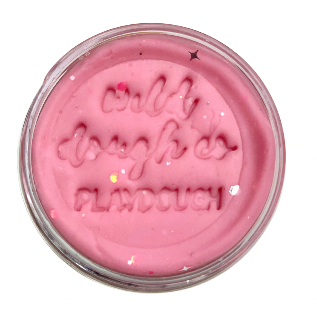 Princess Pink playdough is pastel pink, scented with tutti fruitti and sparkling with glitter.