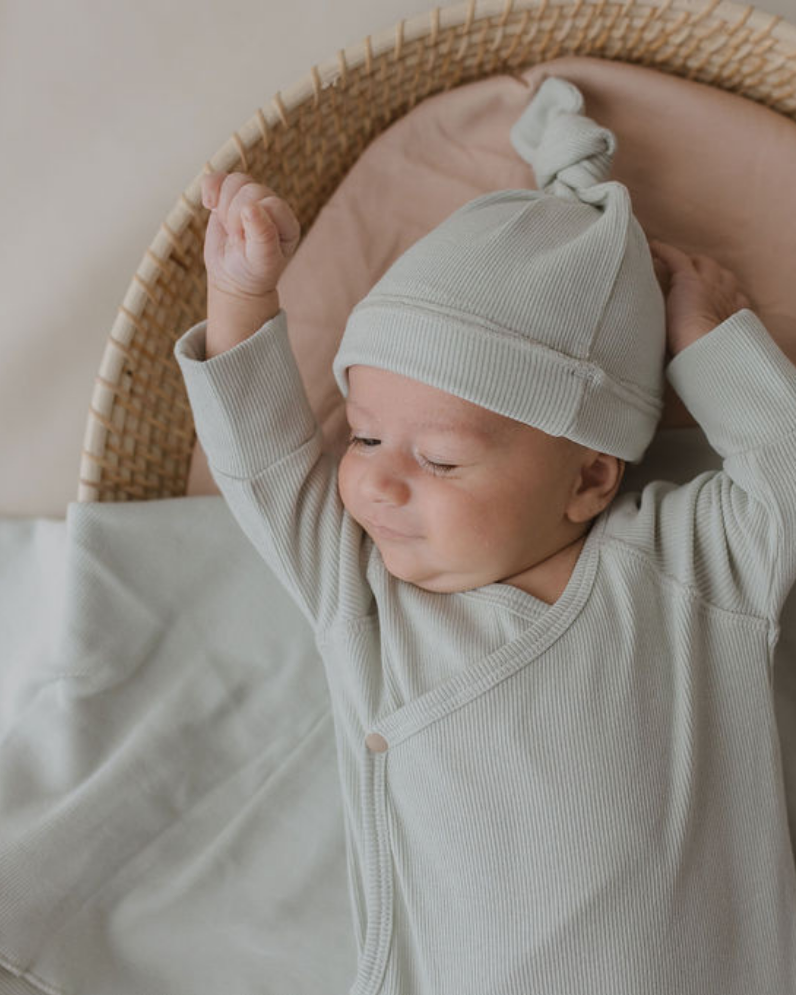Made from a beautifully soft organic cotton elastane, suitable for delicate baby's skin. Our best selling Knotted Hat is one of the most essential item for your new little bundle of joy.